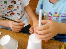 紙コップに色を塗ったり、試し打ちをしたりして、楽しい時間を過ごしました。
