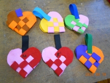 2枚のフェルトを互い違いに組んでいきます。なかなか組めない児童が続出。