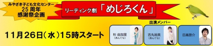 リーディング劇「めじろくん」【11/26(水)】を観劇しよう!