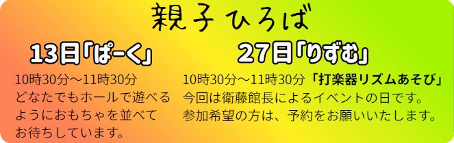 9月の親子ひろば『りずむ』のご案内