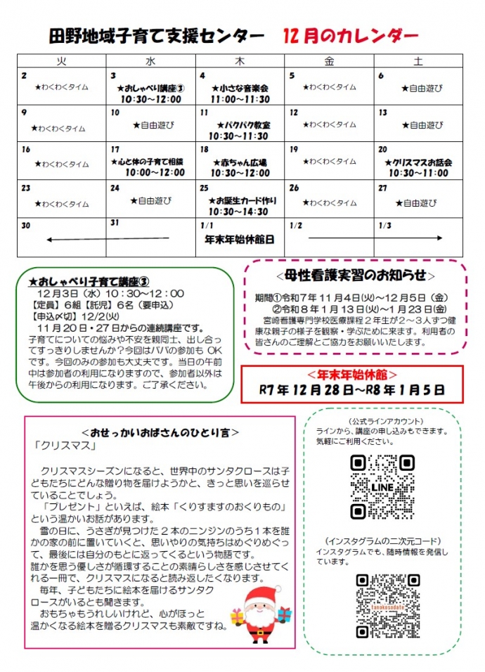 令和7年「田野しい子育て通信12月号」