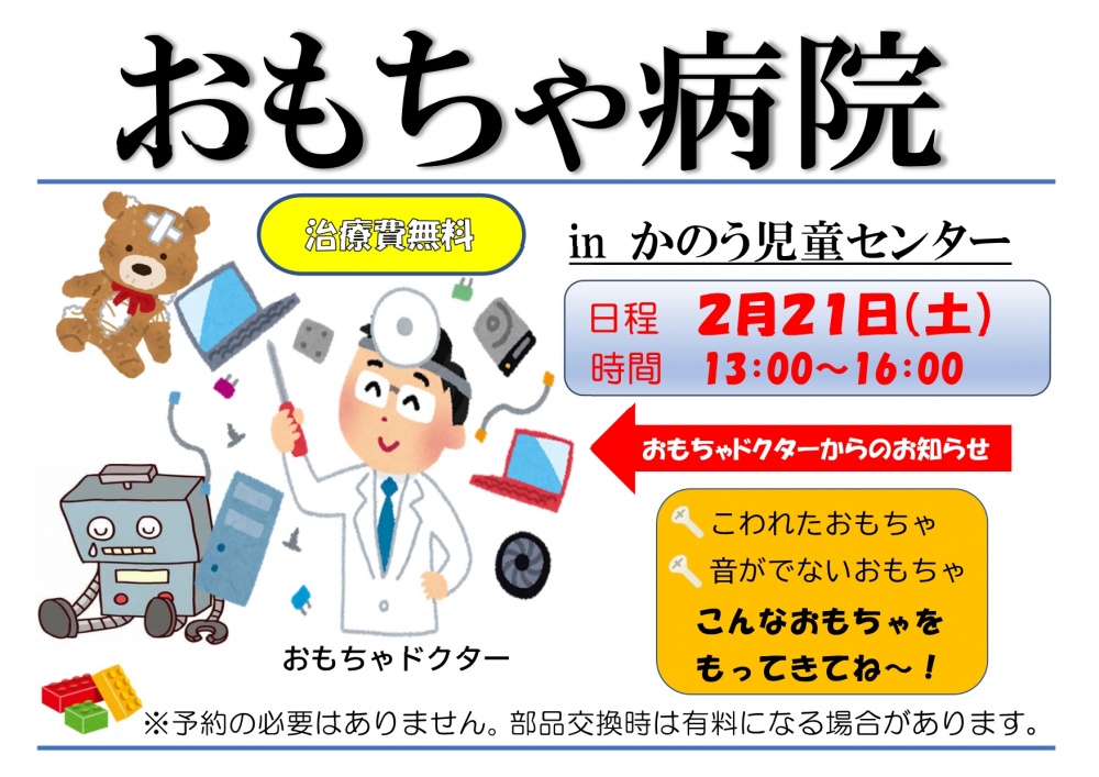 おもちゃ病院開院〔2月21日:土〕します!