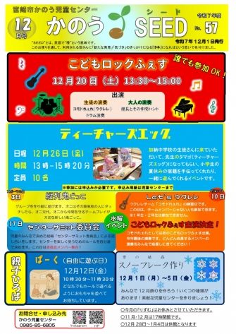 ※12月の『親子ひろば”りずむ”』はお休みをいただいております。