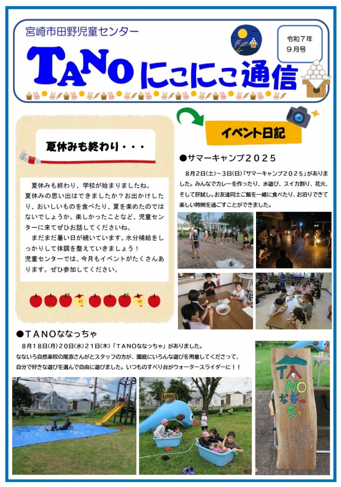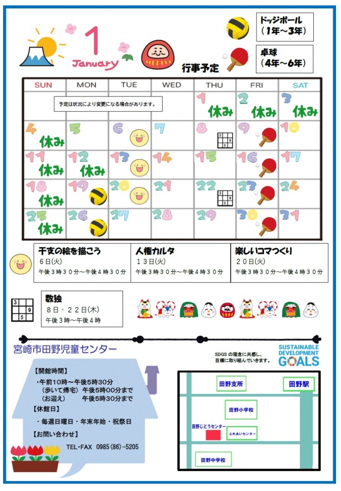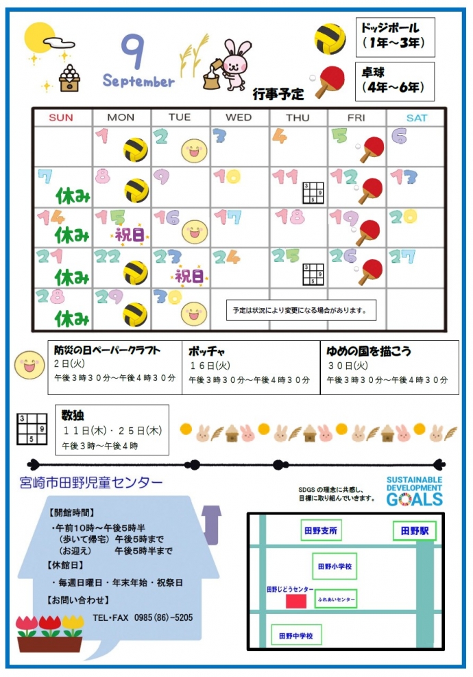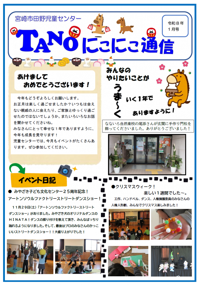 田野児童センターでは、子どもたちが遊びや体験活動を通して自主性や社会性を育て、地域の児童健全育成の拠点として子どもたちの安全な居場所づくりに努めてまいります。